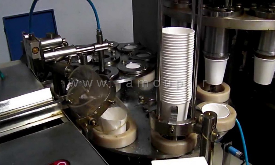در مرحله ای که در ویدئو مشاهده می شود , همزمان با قرار گرفتن کفی در زیر لیوان کاغذی و پرس شدن آن، لبه های بالایی لیوان نیز یک دور به سمت بیرون تابانده می شود تا در هنگام نوشیدن مایع داخل آن، تیز نبوده و لب ها را آزار ندهد.